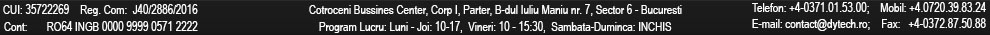Cresterea cifrei de afaceri pe care a inregistrat-o compania s-a bazat pe investitiile in relatii pe termen lung si pe modul in care a fost tratat fiecare proiect. Deschiderea la nou, curajul, tenacitatea si profesionalismul sunt repere pe care echipa DYTECH le urmeaza in relatiile cu toti clientii. |